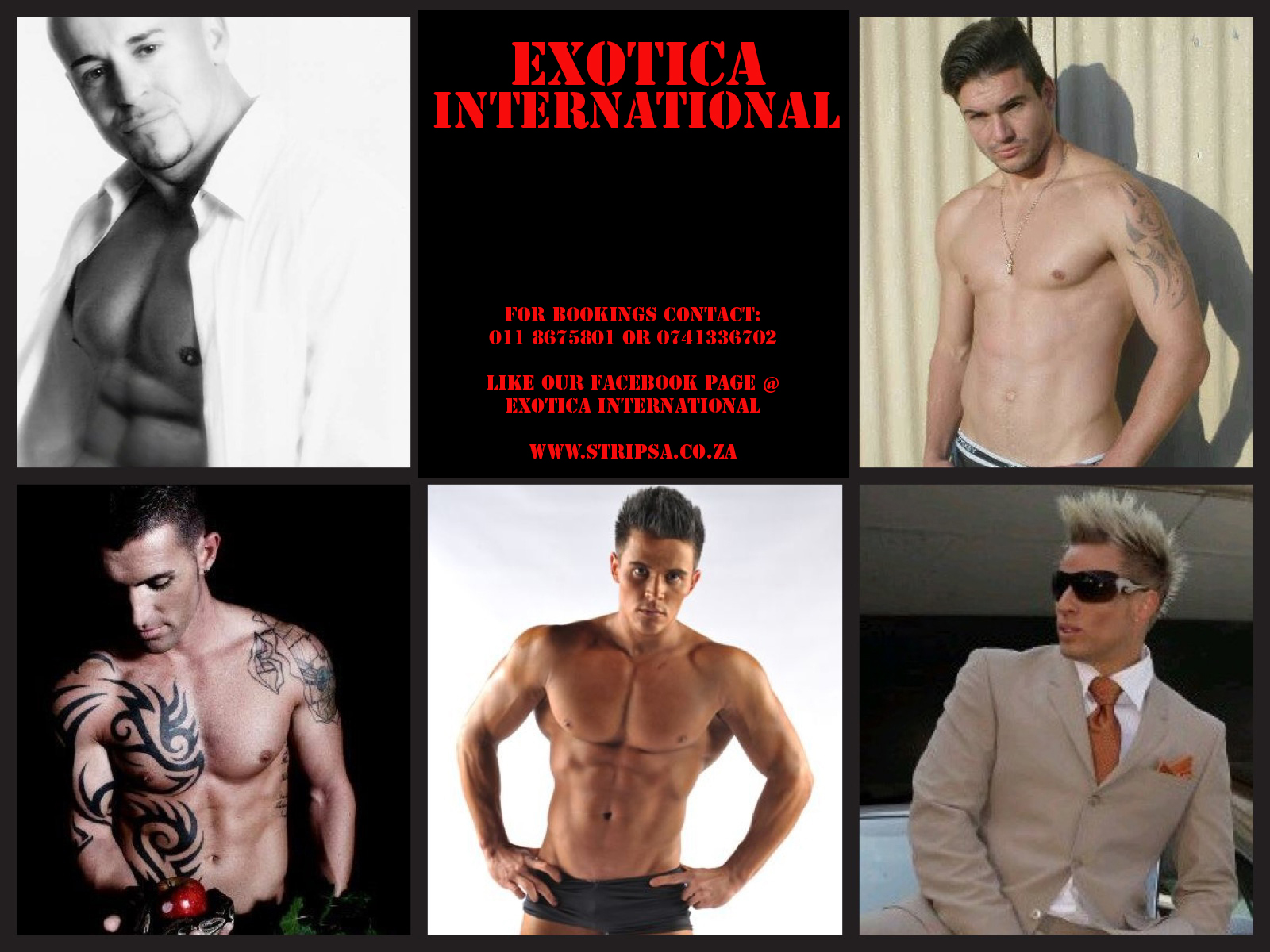 • Booked Exotica International this past Sat and must say the ladies loved the show and they have not stopped talking about it. The guys were extremely professional and really nice guys. Everyone was absolutely professional. Call me for any feedback if you would like, Wikus 0829056971